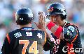 [OSEN=잠실,이대선 기자] 3일 '2011 롯데카드 프로야구' LG 트윈스와 롯데 자이언츠의 경기가 잠실야구장에서 열렸다. 3회초 1사 2루 롯데 이대호가 좌전 1타점 적시타를 치고 조원우 코치와 하이파이브를 하고 있다. / sunday@osen.co.kr